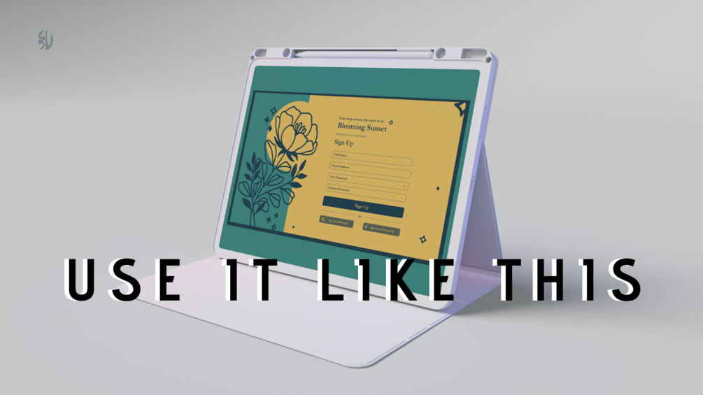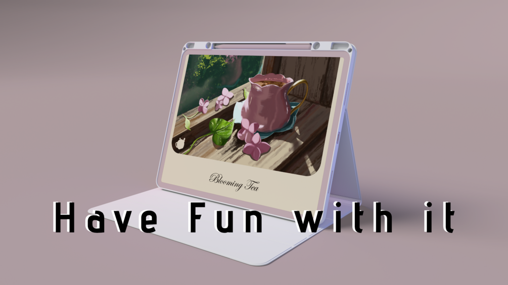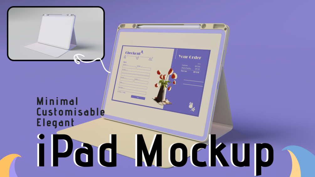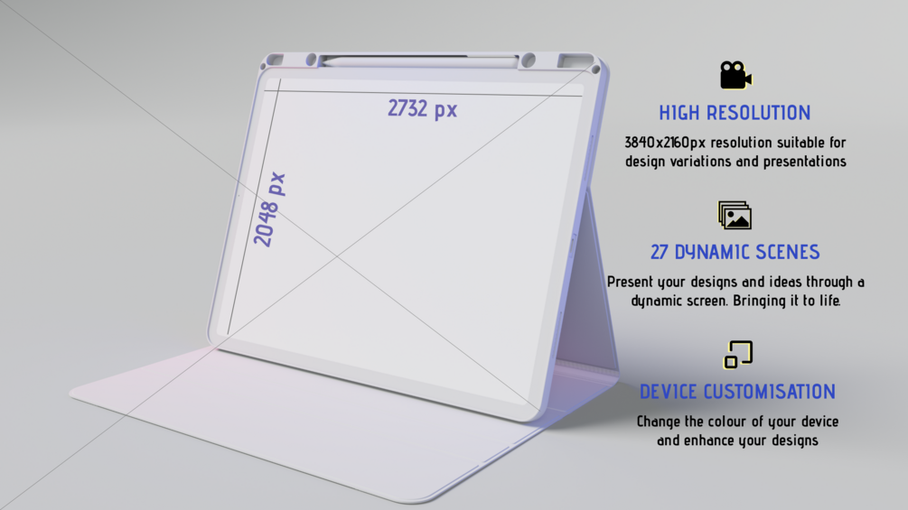 - customise everything in the scene: Background, ipad, ipad cover, pencil colour to match your designs